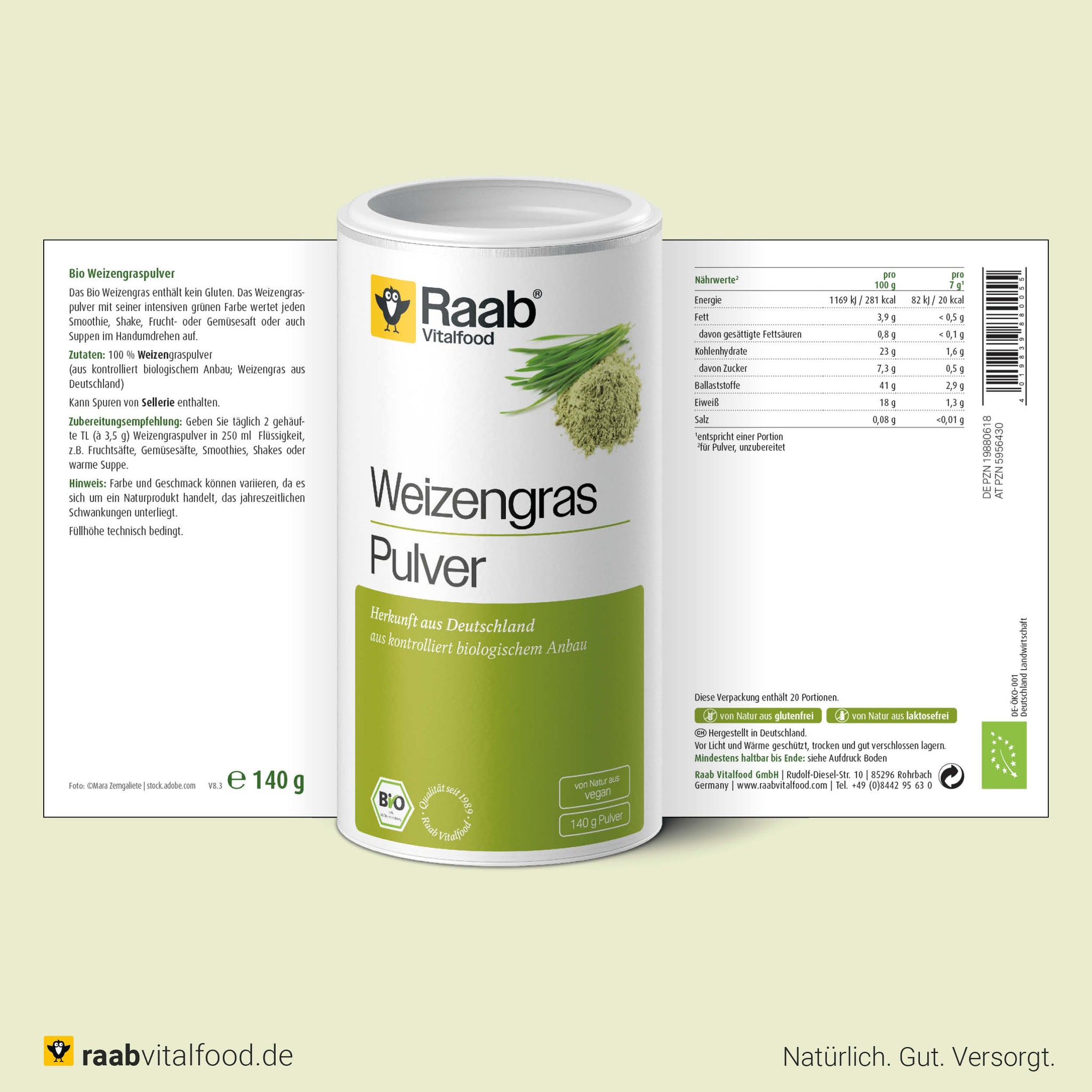 Zutaten: 100 % Weizengraspulver (aus kontrolliert biologischem Anbau)