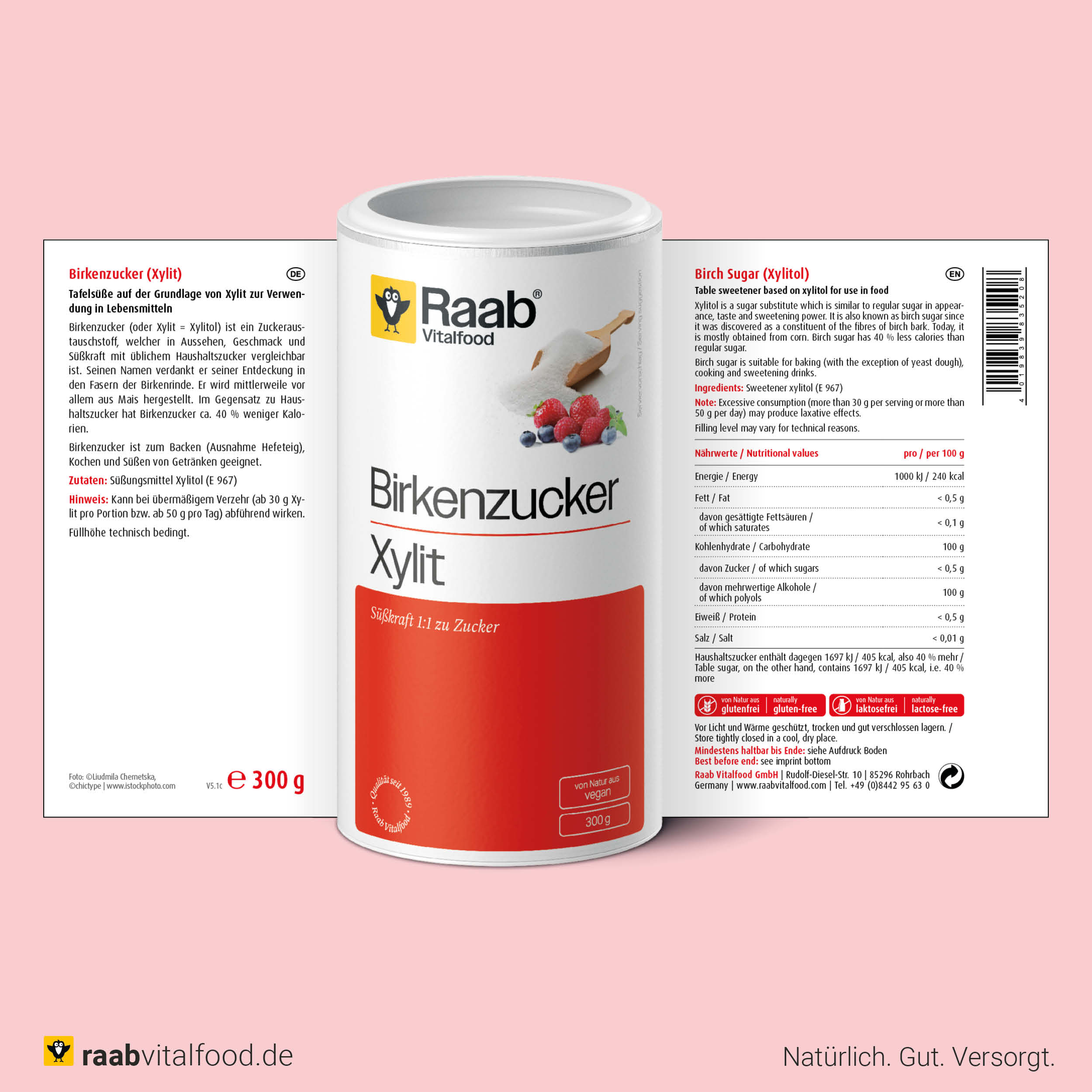 Bei Raab Vitalfood legen wir Wert auf hochwertige und geprüfte Rohstoffe. Unser Xylit wird aus gentechnikfreiem Mais gewonnen und ist frei von künstlichen Zusätzen. Es löst sich hervorragend auf und eignet sich perfekt für den täglichen Gebrauch – ob zum Süßen von Getränken oder zum Backen.
