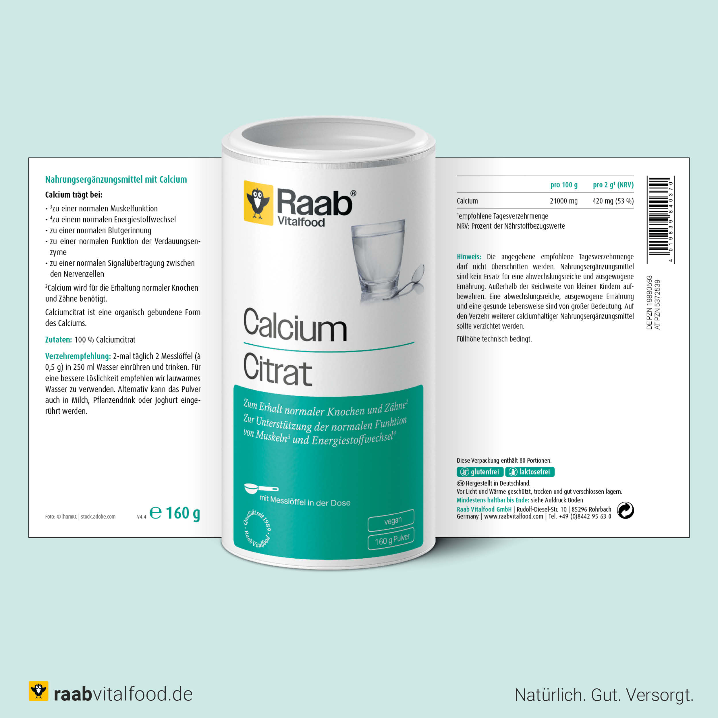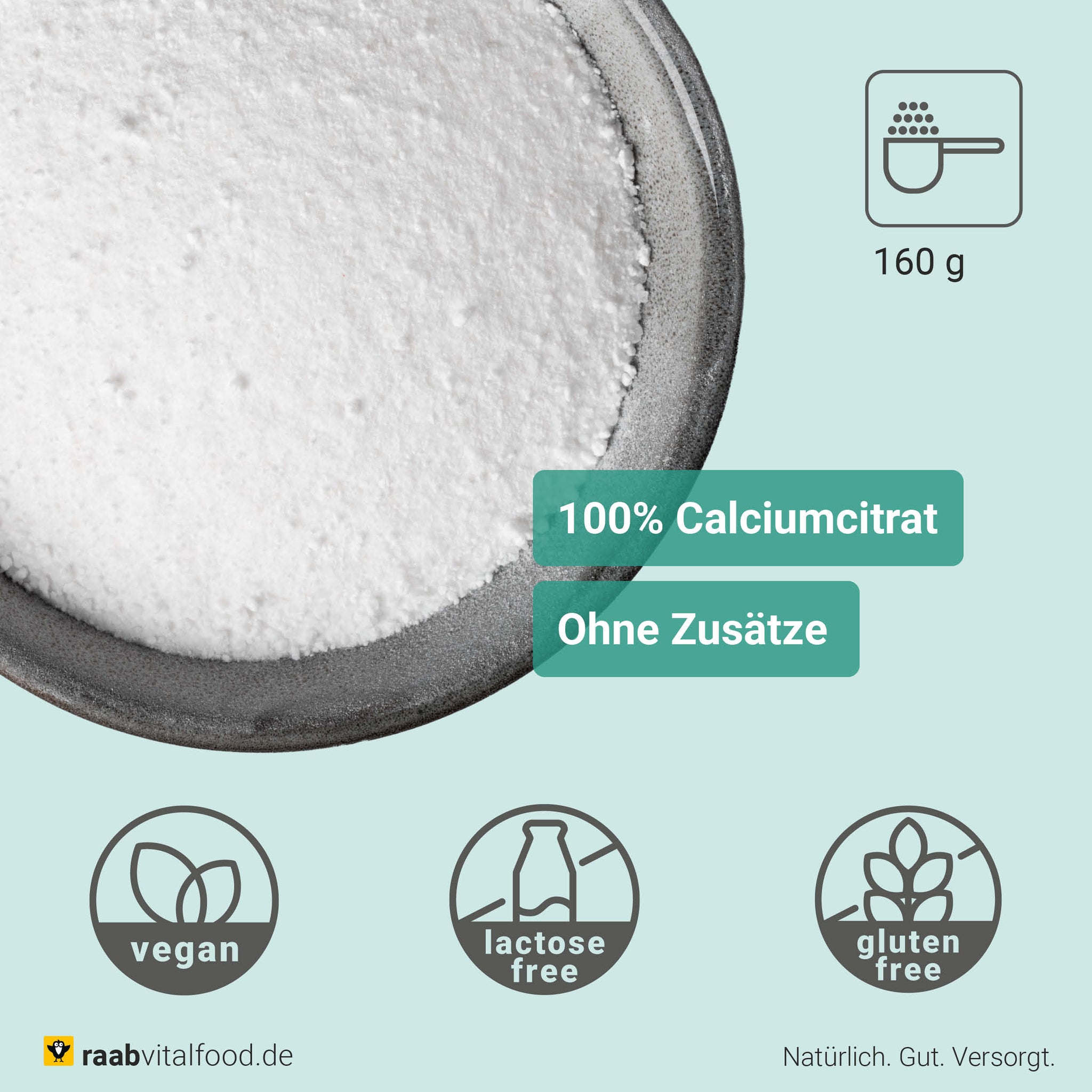 Mit Calciumcitrat bietet Raab Vitalfood eine hochwertige und bewusste Möglichkeit, den Calciumbedarf zur täglichen Ernährung zu ergänzen.