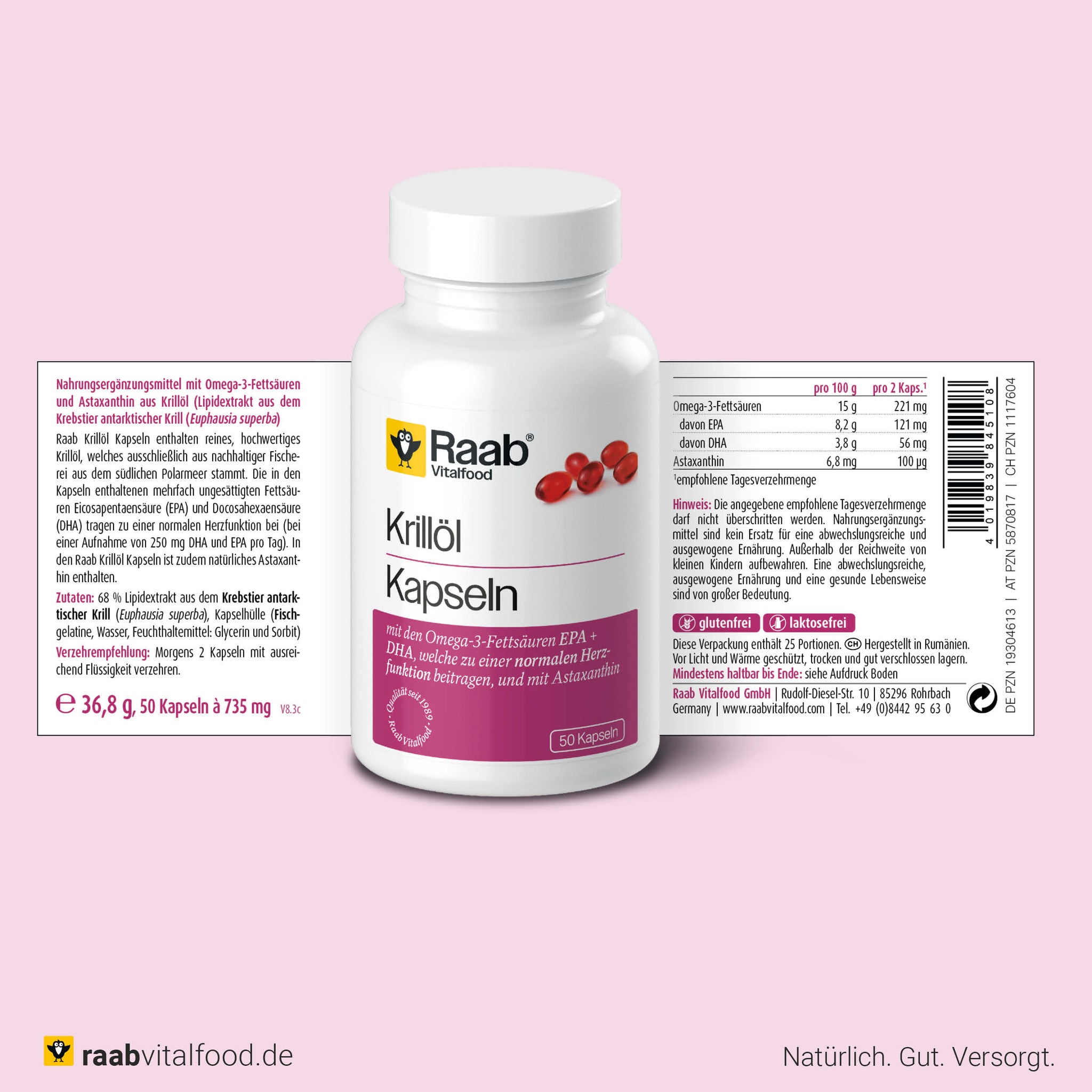enthält das Carotinoid Astaxanthin, laktose- und glutenfrei