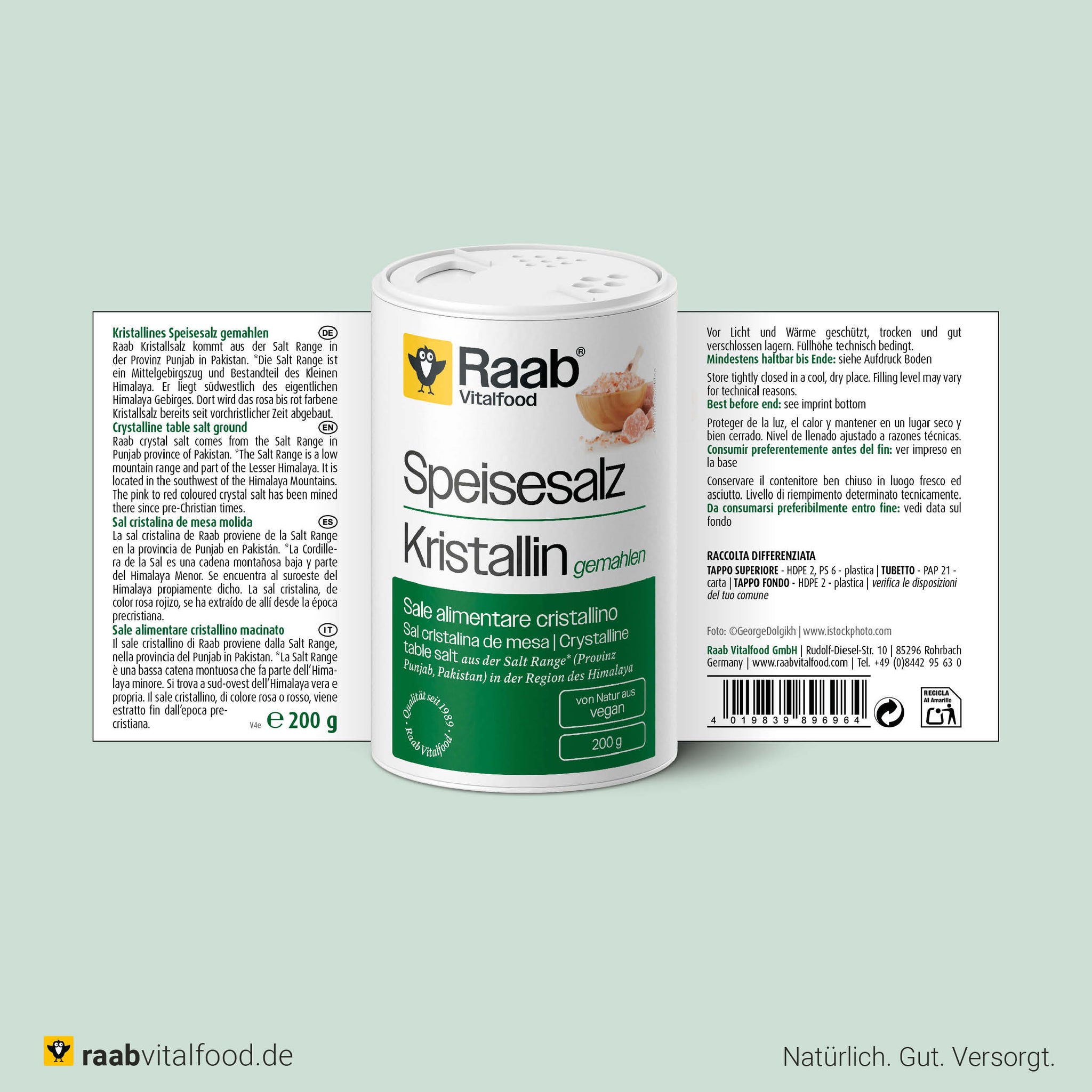 - Kristallin gemahlen im Streuer (200 g) – für eine bequeme Dosierung beim Würzen am Tisch oder in der Küche