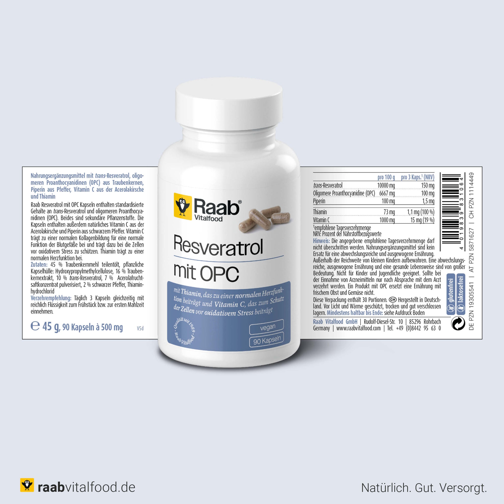 Zutaten: 45 % Traubenkernmehl, teilentölt, pflanzliche Kapselhülle: Hydroxypropylmethylcellulose, 16 % Traubenkernextrakt, 10 % trans-Resveratrol, 7 % Acerolafruchtsaftkonzentrat pulverisiert, 2 % schwarzer Pfeffer, Thiaminhydrochlorid